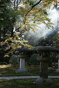 ◆近場は撮り直しがきくというけれど、全く同じ条件が再現されることは絶対ない。だから写真は面白い。千載一遇のチャンスをいかにしとめるか。この時、カメラの高さは灯籠の屋根あたり。2基の灯籠の屋根が同じ高さで並ぶ。もう少しカメラを下げると、手前が高く、向こうが低くなる。その方が絵として落ち着く。これが”後日指摘されたカメラ高さ変更”の話し。落ち着いたいい写真だ。