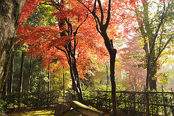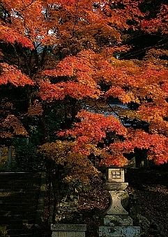 ★葛川にある静かな境内で、斜光を浴びた紅葉が眩しかったので、思わずシャッターを切りました。