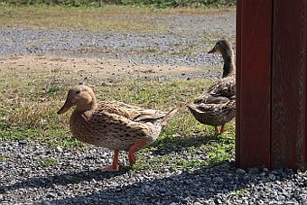 ★平日の「ブルーメの丘」、池から上がった鴨が春のような日差を浴びながら、のんびりと羽を乾かしていました。   合鴨の胸ふくらます小春かな(徹)