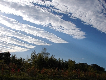 ★こんなに変わった縞縞の雲を見たのは初めてで、空の色が筋状に変わっていてビックリしたり感激したりでした。