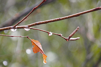 ◆狙ったものにきっちりピントが来ているし、バックのボケもいいし、いい写真だ。メインの枝の傾きをもう少し大きくしてもよかったかも知れない。カメラを傾ければいいわけだが、あまりやりすぎると、水滴が斜めにぶら下がることになって難しいかも知れない。あと、細かいことだけど、メインの枝から分かれた斜め上向きの細い枝とバックの黒い木が妙な重なりかたをした。ちょっとしんどい。