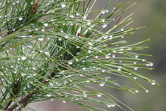 ◆松葉についた雨滴を花に仕立てた。わーっと集まった群像ものになった。こういうのは、誰が見てもそこへ目が行くという代表格がほしい。雨粒の場合、みな似たり寄ったりで、どれということは無理だろう。やっぱり枝かな。それをうまくあしらって、柱を作ればもっと締まった写真になった。