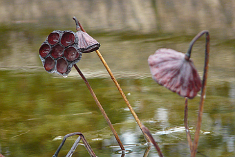 ◆1.バックの水平線は池だろう。繊細な味のある写真である。草の名前は分からないが、細い枯れ草が左右対称放射状に並ぶ。その中でルール違反の1本が頭を垂れている。この写真はこれがポイント。撮影時にこれを意識したかどうかで勝負が決まる。意識していなかったとしたら、今後はさらに注意して見てね・・、ということ。
