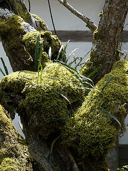◆これは何を撮ったのかな。いよいよ写真が難しくなってきた。コメントによると木に苔が巻き付いているらしいが、何がどうなっているのかもう一つよく分からない。苔の面に当たる光はたしかにきれいだ。思い切ってもっと抽象的に、苔の面の面白さを狙ってもよかったか。半分抽象化しながら、現実のものも見せたいという、気持ちが中途半端だった。