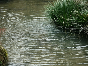 ■水が湧き出しているのか、そこからの波形が綺麗でした。鯉がはなしてあるからか、透明の糸が張ってありました。