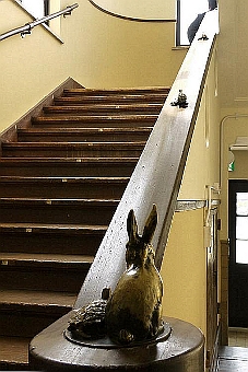 ◆カメラを上へ向けなかったのがよかった。階段を歪ませずさすが元専門家の撮影というところ。踊り場のカーブも重要だったのかも知れないが、それと同時に、ウサギの台ももう少し下まで見せたかった。 |