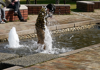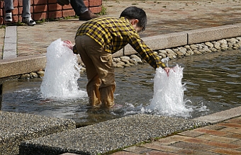 ■2.なぎさ公園の昼下がり。陽光に誘われた腕白坊主。手品師のつもりか・・・失敗。
