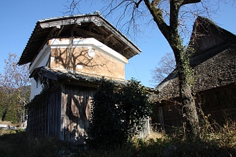 落ちかけた蔵の壁に柿の木の影が印象的でした。