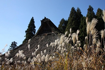 既に人の住んでいない茅葺き屋根の家の周りに芒の白い穂が揺れていました。帰り際に食べた「業平そば」は素朴でとても美味でした。