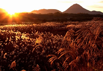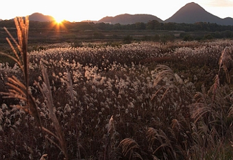 1は太陽が僅かに顔を出したところ。左の手前の穂が赤く見えるだけで、ほかの場所は色の変化がほとんどない。風景としてはまだ撮りやすい状態だ。