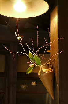 ◆類似作品が2010年1月後半にある。比較してみると面白い。花瓶も違うし花も違うが、写真としての大きな違いは、上の電球の取り扱い。前回のは傘まで全部を入れた。いってみれば平凡な入れ方。それに対してこちらはかなりの部分をカットした。こちらの方が面白い。バックも暗いながらも造作が見える。雰囲気描写という意味ではよかったかも知れない。