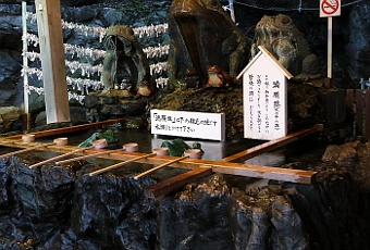 ◆カエルくん久しぶりの登場。現場はどちらが明るかったのか分からないが、1よりこちらの方が暗く写っている。ライトアップだとか。これで日が暮れたらしめ縄が明るくなるのだろう。これぐらいの暗さだと、蛙のツラに弱いストロボをかますのも一つの手。強すぎると情緒を壊すが。